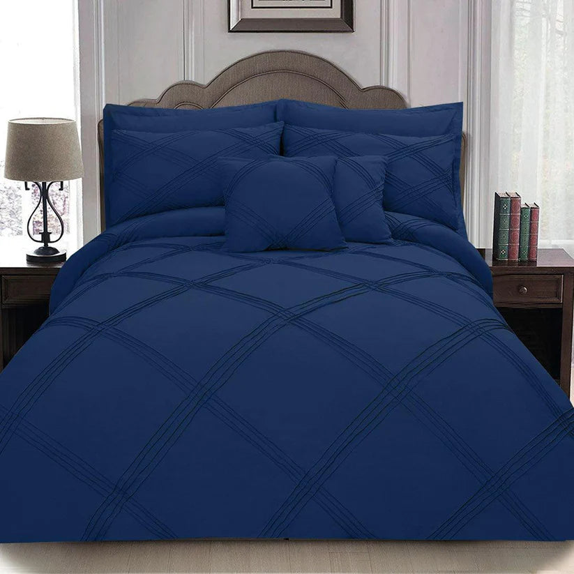 1 Duvet Cover 2 Pillow covers 1 Bedsheet 2 Pillow sham covers 2 Side cushion covers.