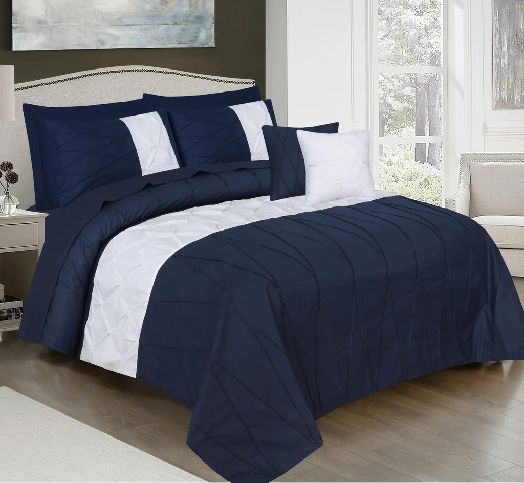 1 Duvet Cover 2 Pillow covers 1 Bedsheet 2 Pillow sham covers 2 Side cushion covers.